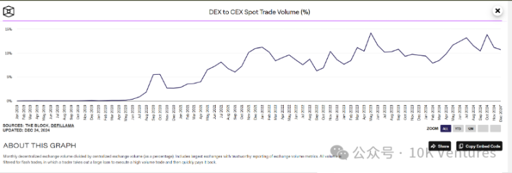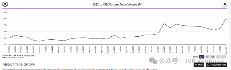 从 24 年开始的新一轮 4 年周期,我们能明显看到链上现货 / 衍生品的市占率正在不断扩大。