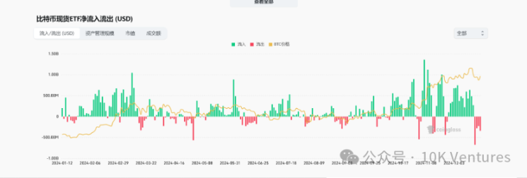 观察 BTC ETF 的净流入流出,会发现今年的 BTC 波动和 ETF 的净流入流出已经高度正相关了,定价权逐渐转向北美。