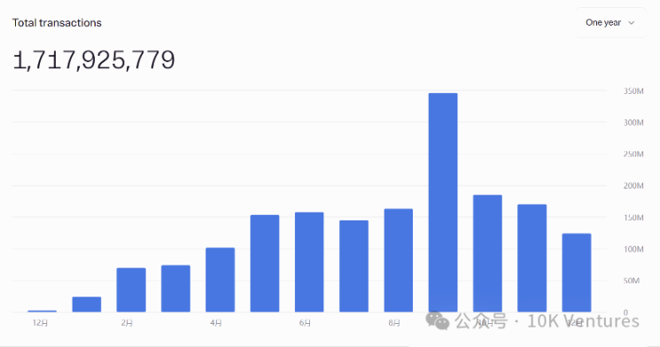 今年最成功的主题,莫非就是 Meme 币了。Meme 的交易量很大一部分虹吸掉了腰部尾部 VC 币的交易量。10-11 月的 pump.fun 更是将 meme 狂潮巅峰造极推至最高潮,每 10 秒钟全球都有几十个盘子在 pumpfun 发行。今年也有类似于 ai16z, bonk, bome, spx 6900 等 meme 达到了超过 10 亿美金的流通市值。