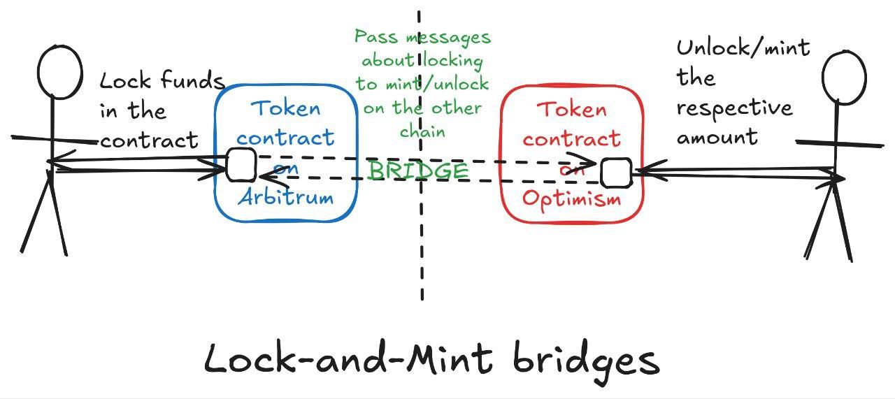 一些意图型跨链桥在内部利用了锁定与铸造机制。在这种情况下,跨链桥铸造好包装代币,这些代币要么发送给满足用户意图的填充者,要么直接发送给用户(如果没有填充者介入)。不过,意图型跨链桥通过其求解器网络增加了额外的效率层,但它们从本质上仍然依赖于与传统锁定与铸造桥相同的原理。