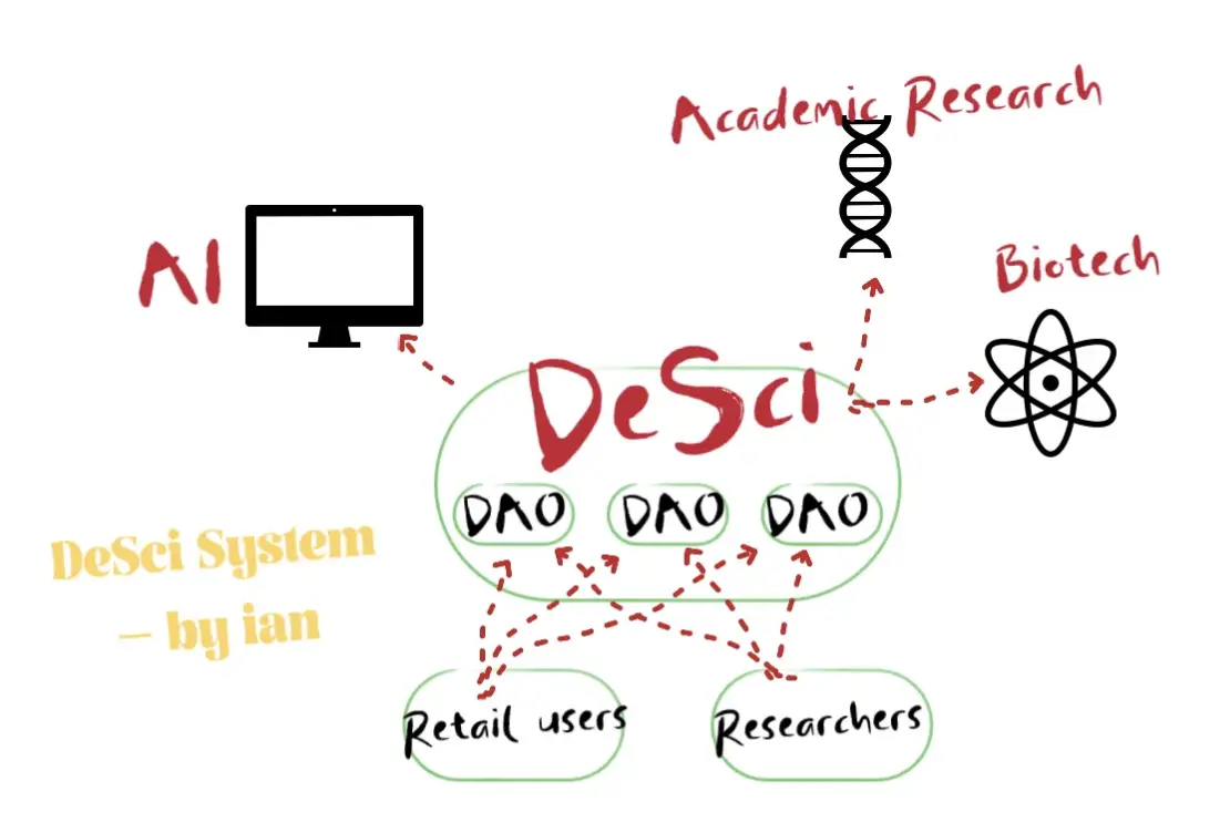 促成 DeSci 的中心思想是每个人都有机会平等地获取任何 level 的科学和知识,科学研究的过程也应当是对大家公开透明的。因此,DeSci 致力于创建一个生态系统,使得知识的贡献者可以被激励并且分享他们的 research,任何人都能 permissionless 地浏览甚至迭代这些内容。