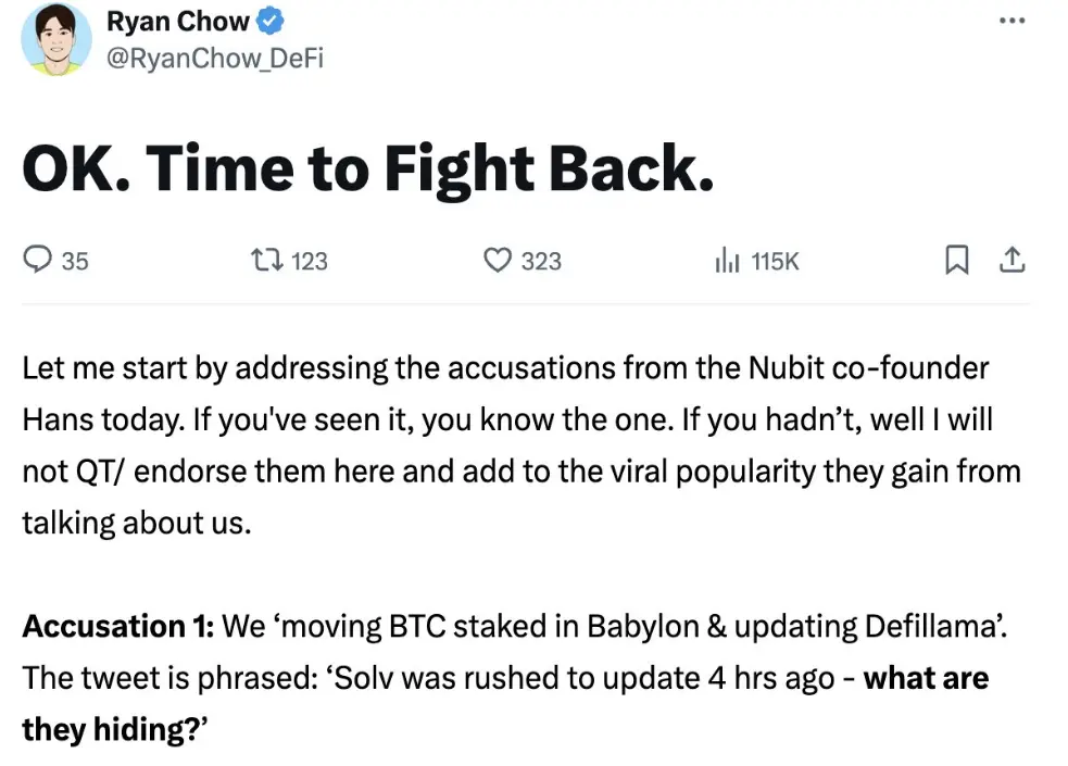 在他的帖子中,Ryan通过以下几点为@SolvProtocol辩护: