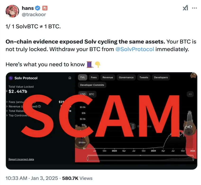 NuBit创始人的“骗局警告”——2025年首个重大的加密事件正在#BTCFi领域爆发!@SolvProtocol的风波引发了加密圈的广泛关注。
