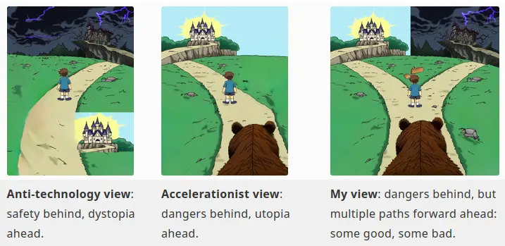 在我去年的文章中,d/acc 特别聚焦于防御性技术:物理防御、生物防御、网络防御和信息防御。然而,单纯的去中心化防御并不足以构建一个伟大的世界:我们还需要一个具有前瞻性的积极愿景,明确人类在获得新的去中心化和安全性之后能够实现何种目标。