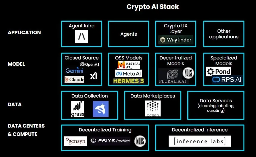 作为前言,Crypto x AI 的项目类别跨越了多个层级。Crypto x AI 的真正技术前景大多与通过 Crypto 经济引导更好的推理或提供对计算的去中心化访问有关。Delphi 的这篇 文章 是了解整个堆栈的良好开始。