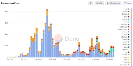总交易费用(以美元计价)显示了特定区块链上对区块空间的总需求,即真正的经济价值。