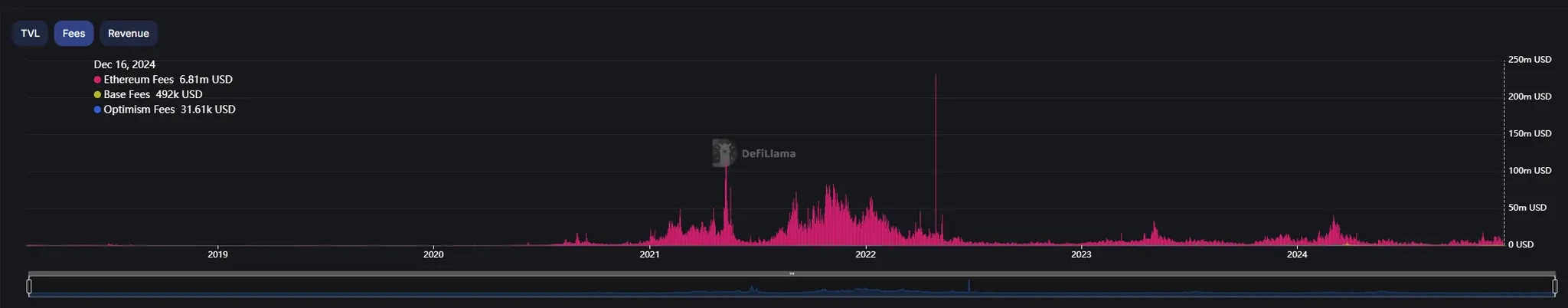 甚至 2024 年第三季度,以太坊的去中心化金融(DeFi)收入降至 2.61 亿美元,为 2020 年第四季度以来的最低水平。