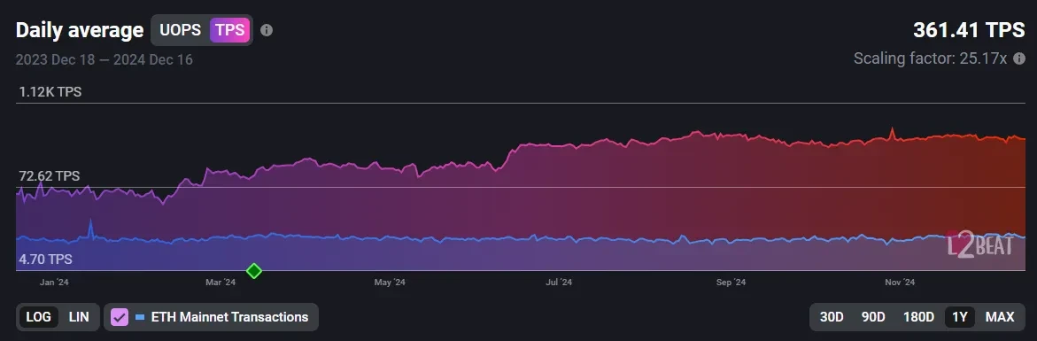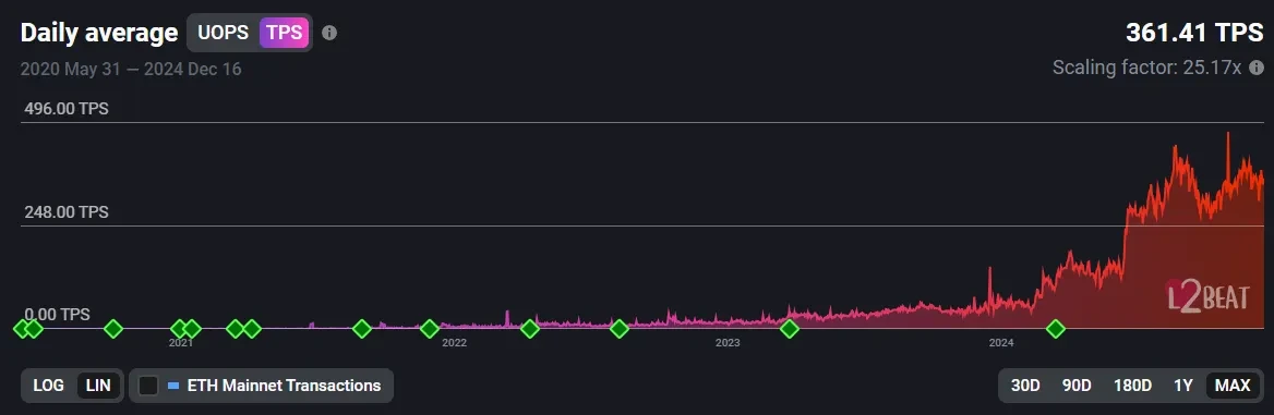 尽管以太坊的 L2 路线在性能扩展上是取得了成功的,但是这仅仅只能说是成功了一半,因为 L2 在吞吐量上提升了几个数量级,在面临交易高峰的时候对当个项目或许是能够撑的住的,但是作为大多数 L2 的存储和共识安全继承链来说这点的扩展提升是远远不够的。