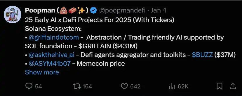 你要么进入市场的领军者,要么研究技术和 GitHub,找到一个「好的技术基础设施」。如果你不能搞定这些,最好的选择仍然是在$ai16z 或$virtual 中找到一个好入口。不要把你的 SOL/ETH 投入到随机的 AI 骗局项目中。