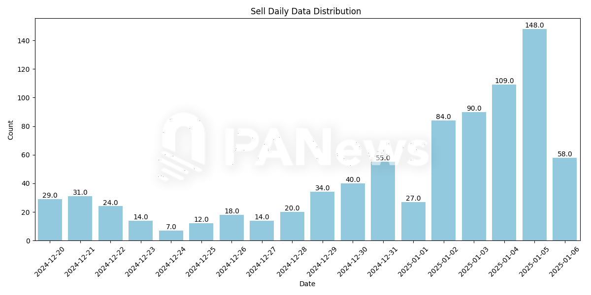 相对其他的MEME代币,上述的初次买入平均金额明显较高,这里的主要原因是受到了一些大户地址的影响,其中初次转入金额最高的地址为Dsjzh2oj3HxyPefjQr5qqvbR5NrMnvBgptGLSQ3t8T5i,该地址12月31日由另一个地址转入约413万美元,后续陆续又转入约50万美元,目前的持仓价值为2733万美元。