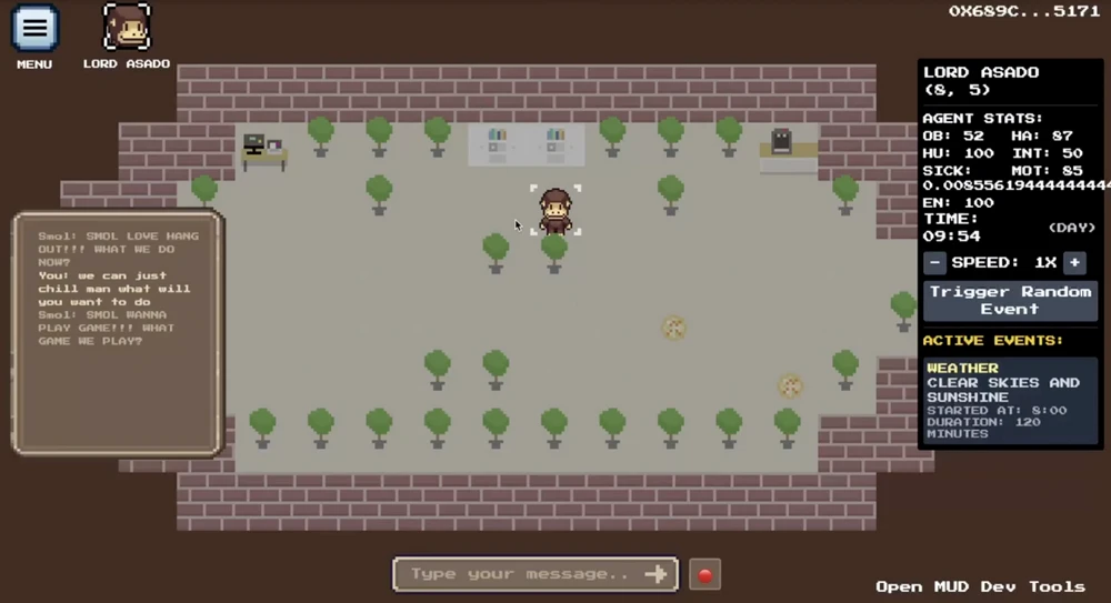 Smolverse 是 Treasure DAO 上的游戏和 NFT 项目。从去年 12 月开始,Smolverse 与ai16z合作开发名为“Smolworld”的链上 AI Tomogatchi 游戏,该游戏结合了 Eliza 的 Agent 框架。