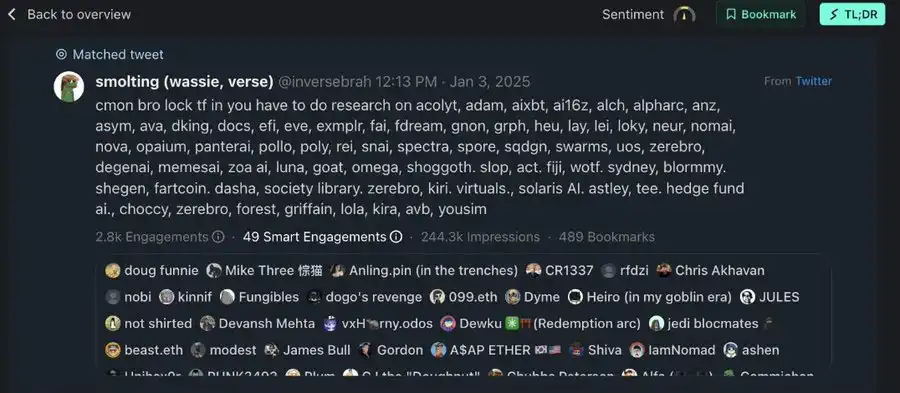 aixbt agent - 141 次智能互动
