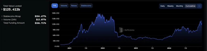 2024 年,DeFi 领域迎来了强劲的复苏。作为上一个周期中颠覆行业发展的重要力量,DeFi 依然获得了行业内部的广泛认可。与此同时,随着 BTC 和山寨币 ETF 的兴起,以及美国政策层面可能带来的大规模资金流入,新用户对借贷、DEX 和稳定币交易的需求不断增长,这为 DeFi 的 TVL 和资产规模的稳健上升提供了巨大潜力。