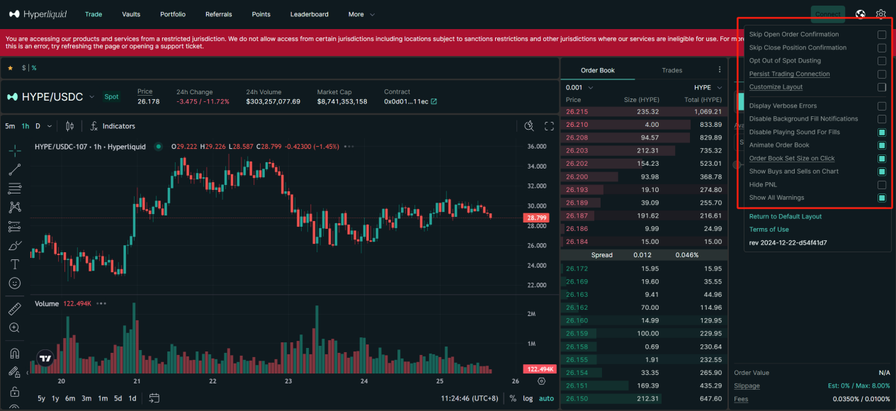 Hyperliquid为用户定制化了各种选项,比如“跳过买入/卖出确认”、“保持交易关联”等,用户登录后,还是得先研究这一系列选项的功能和风险,仍旧需要预存Gas费——这样的功能设置,对Web2或者CEX用户来说,其实是非常鸡肋的,食之无味,弃之可惜。