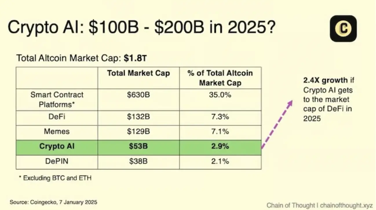 目前,加密人工智能代币仅占山寨币市值的 2.9%。但这种情况不会持续太久。