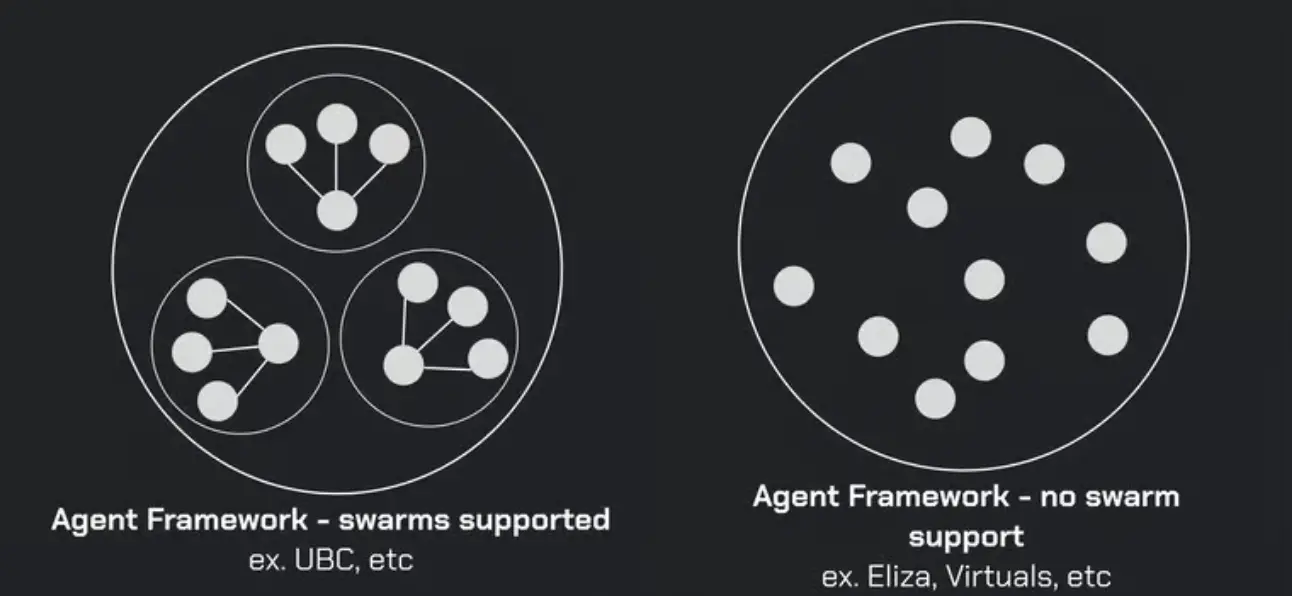为了让群体蓬勃发展,通用通信标准至关重要。智能体需要具备发现、认证和协作的能力,无论它们基于何种底层框架。像 Story Protocol、FXN、Zerebro 和 ai16z/ELIZA 这样的团队正在为代理群体的出现奠定基础。