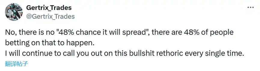 一些用户更担心,野火预测市场可能会鼓励赌徒纵火以提高其投注的成功率。一位用户指出,这些市场的赔率完全基于赌徒的情绪,并在回应 Polymarket 的帖子时表示:「不,没有所谓『 48% 的可能性会蔓延』,只是有 48% 的人在赌它会发生。」