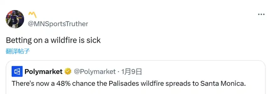 原文标题:Polymarket faces backlash over『sick』California wildfire markets
