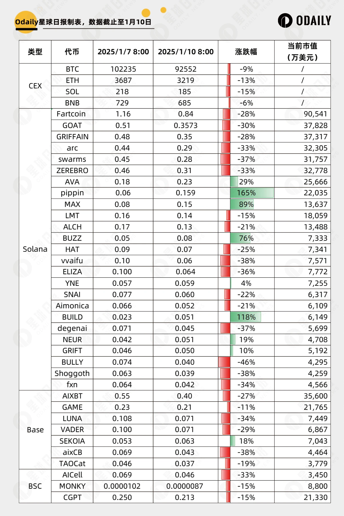 以前的下跌行情中,多数用户只关注 CEX 中什么代币最抗跌, 然而最近 DEX 已成为不可忽视的主战场之一,尤其是 Solana 和 Base 链上的 AI 板块 。 因此,本文将以 Solana、Base 和 BSC 上的部分头部代币作为研究对象,展示其在这场下跌中的表现。