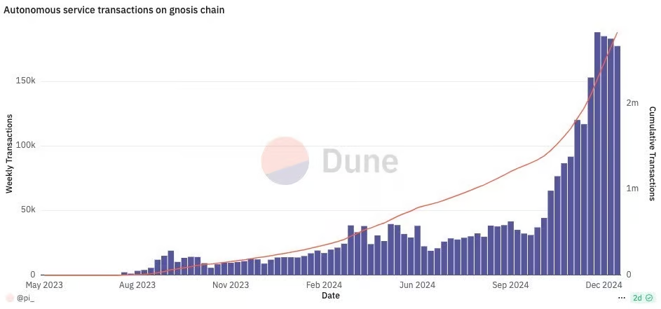 Gnosis 上的 Olas agent 交易;来源:Dune
