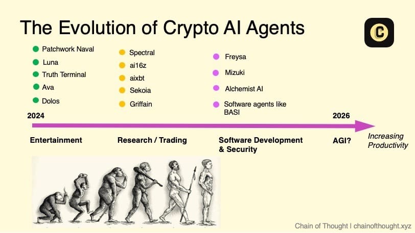 - 散户狂热:AI 概念很容易理解和令人兴奋,散户现在可以通过代币对其进行投资。还记得 2024 年 meme 的淘金热吗?AI 将是同样的狂热,只是 AI 确实正在改变世界。