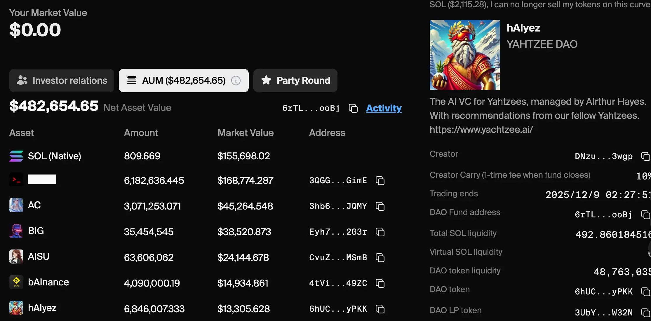 于是,daos.fun 里的一个基金项目,就是 AicroStrategy ,它有自己的持仓和基金管理策略。