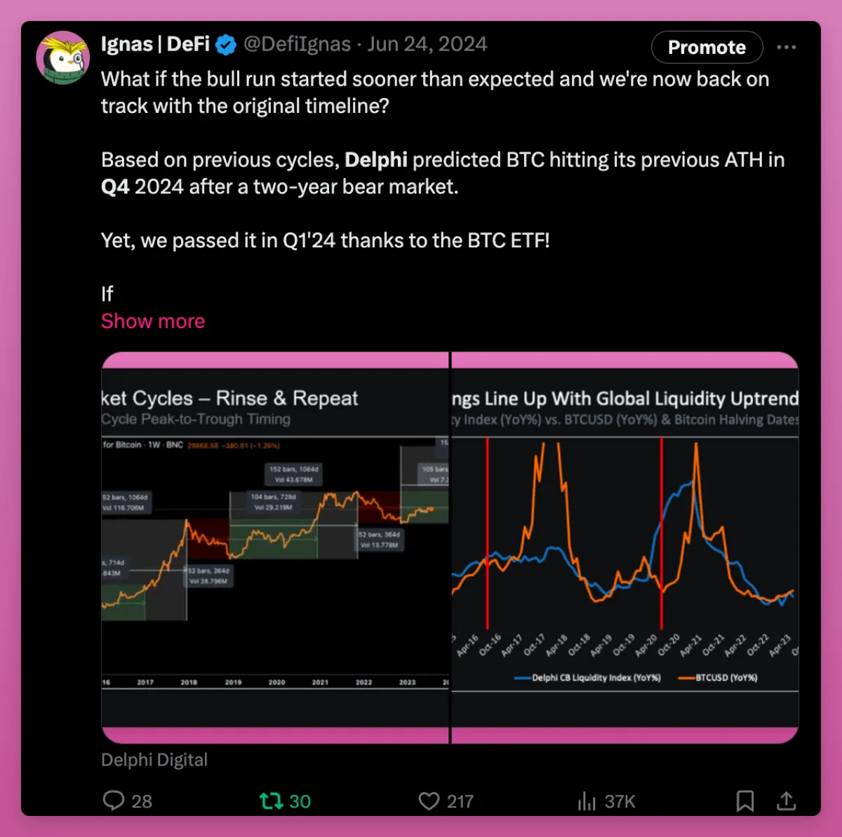 但事实并非如此。因此,与大多数共识交易一样,我相信会有一些因素打乱牛市周期,可能会推迟或是延长它。
