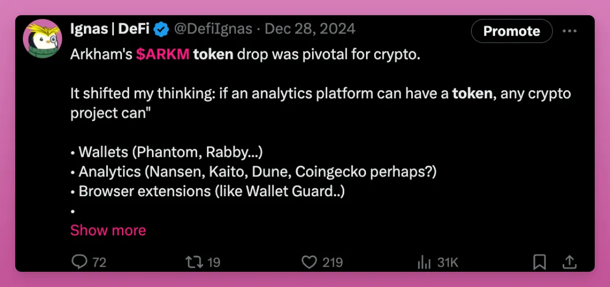 如果分析平台可以推出代币,那么任何加密项目都可以:钱包、扩展程序、营销机构……