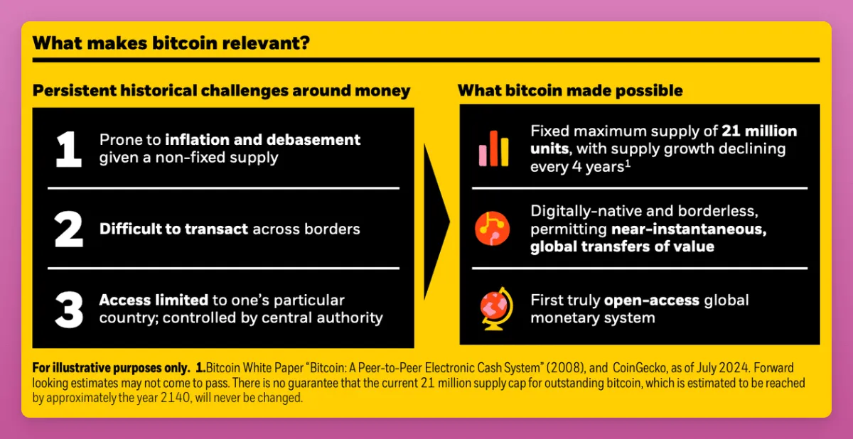 贝莱德在其 2024 年的研究中声称 ,比特币是一种独特的多元化资产,具有以下特点: