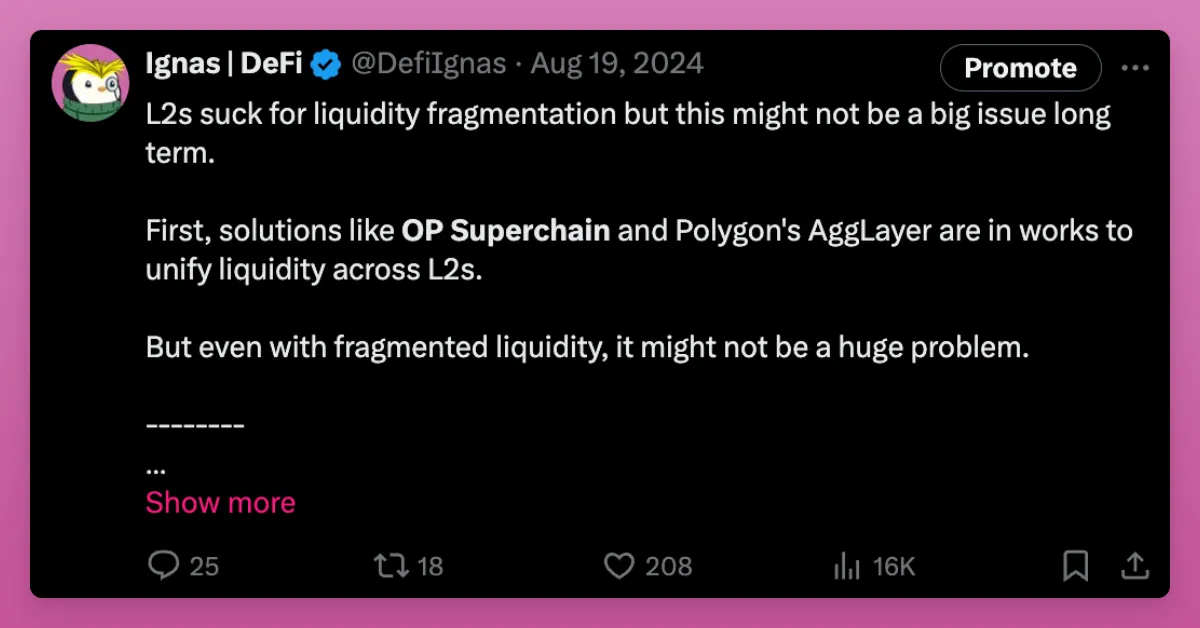 与在统一的 Solana 上构建不同,开发人员必须为其应用程序选择一个特定的 L2 才能成功