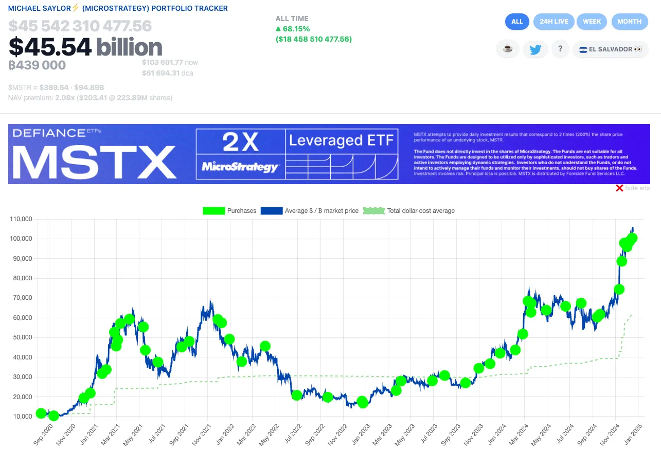 MicroStrategy 的比特币购买记录,资料来源:saylortracker.com