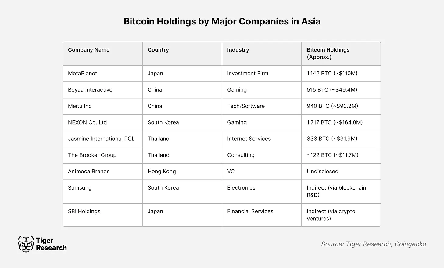 MicroStrategy 的成功故事也影响着亚洲市场。博雅互动已将其持有的以太坊转换为比特币,MetaPlanet 则在 2024 年积极购买比特币。这些举措反映出亚洲市场对比特币在波动性管理和长期价值保值方面效用的认可度不断提高。