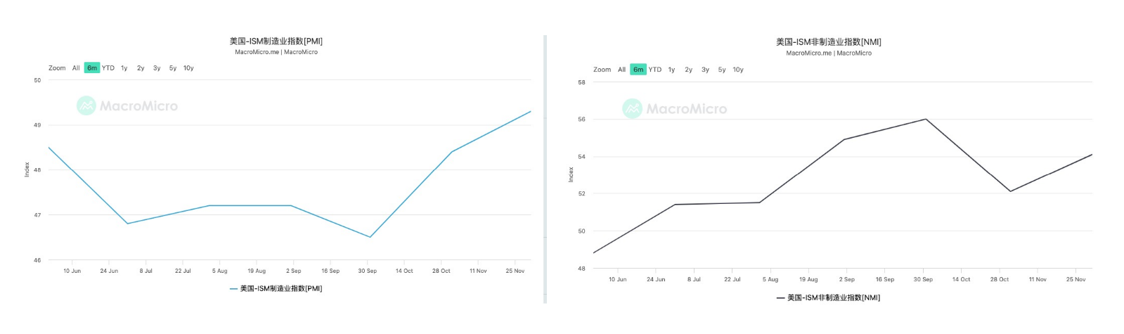 那么首先我们来看下造成短期内价格疲软的因素是什么,上周很多重要的宏观指标公布,让我们来逐一看下,首先来看美国的经济成长相关数据,ISM 制造业和非制造业采购经理人指数均持续走高,由于采购经理人指数通常是经济增长的领先指标,所以这预示着在短期内美国经济展望较为向好。