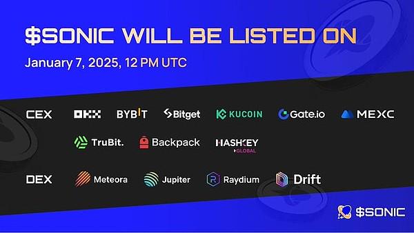 2025年1月:$SONIC代币正式生成(TGE),并同步上线OKX、Bybit、Bitget、KuCoin等知名交易平台。