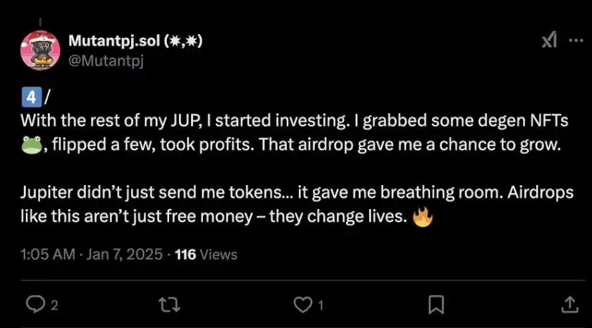 Jupiter 的代币分发方式进一步体现了空投的普惠潜力。他们计划分发 7 亿枚 JUP 代币,覆盖超过 230 万个符合条件的钱包,是加密历史上分布最广的空投之一。Jupiter 的空投策略旨在通过激励长期参与和治理参与来扩展其生态系统。这些空投在扩大市场参与方面表现出了非凡的效率。