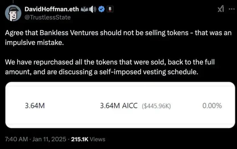 近期的 Aiccelerate DAO 启动进一步展示了这种现象的演变。尽管有 Bankless 创始人和行业资深人士等知名顾问的支持,该项目一经推出便受到批评,因为获得代币的内部人士在没有锁仓期的情况下开始抛售。即使是知名项目,也可能成为快速价值提取的工具。