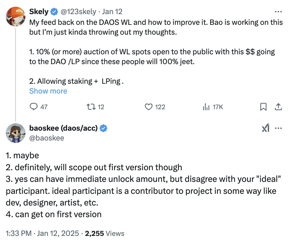 daos.fun 创始人 baoskee 回应表示这几条建议都有实现的可能性。