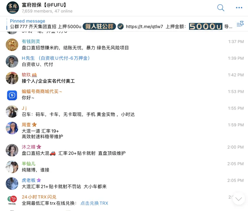 近日,演员王星被骗至缅甸的事件在网络上引发广泛关注,公众对案件背后的细节充满好奇。慢雾安全团队注意到,一份聊天记录截图在社交媒体上广泛流传,截图中的群名为「富府专群 需方上押 14000u」,截图中提到,王星已上车,而所谓的担保费用为 14,000 USDT,并附有一个用于收取担保费用的加密货币地址:TAiv3gxSGkf7xWdEwWqoWgAB6FU4XV5HPn。事情的真相是不是真如图那样呢?