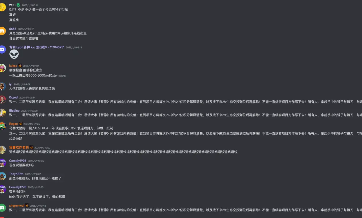 在 TGE 后的 2 天时间内,Xterio 官方 Discord 频道被社区的负面言论彻底冲刷,缺乏官方工作人员出来安抚社区成员情绪,直到 1 月 10 日晚间,冲突情绪随着一则新公告开始缓解。