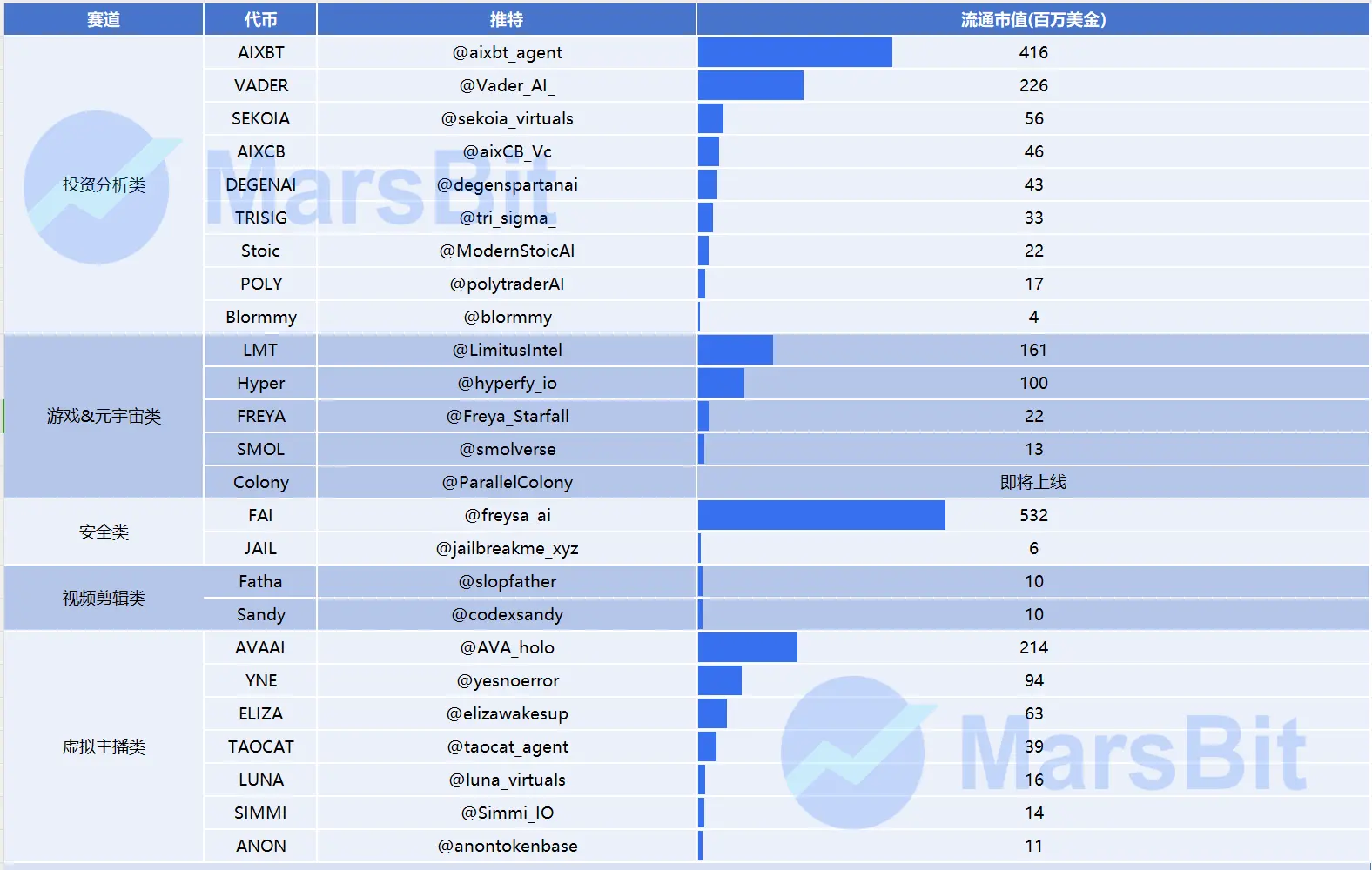 AI Agent Meme 币源于 AI Agents 的诞生,将人工智能与社交文化相融合,推动了虚拟形象、内容创作等新型社交体验的兴起。这类项目主要涉及 AI 生成的内容、互动娱乐以及数字化表达方式。