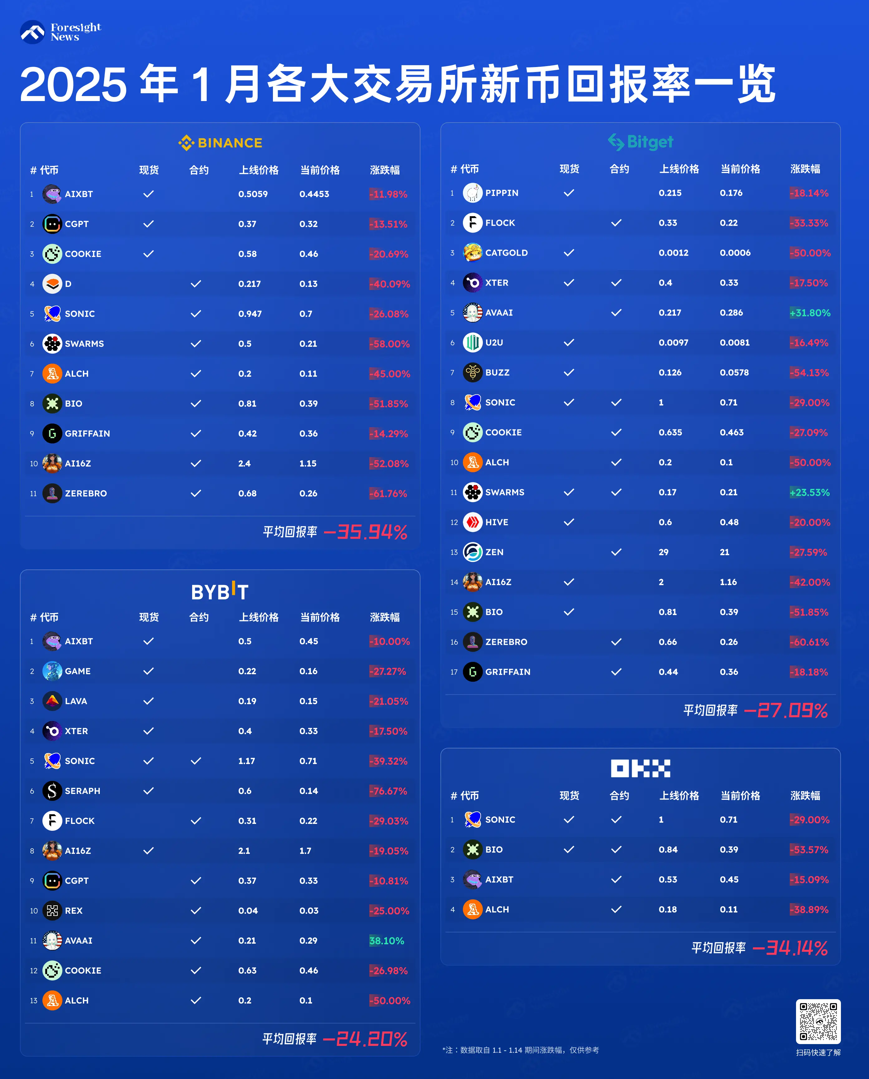 进入 2025 年,中心化交易所的上币依旧是新币墓碑,做空真的能实现永赚吗?本文带你一览 1 月各大交易所上币情况。