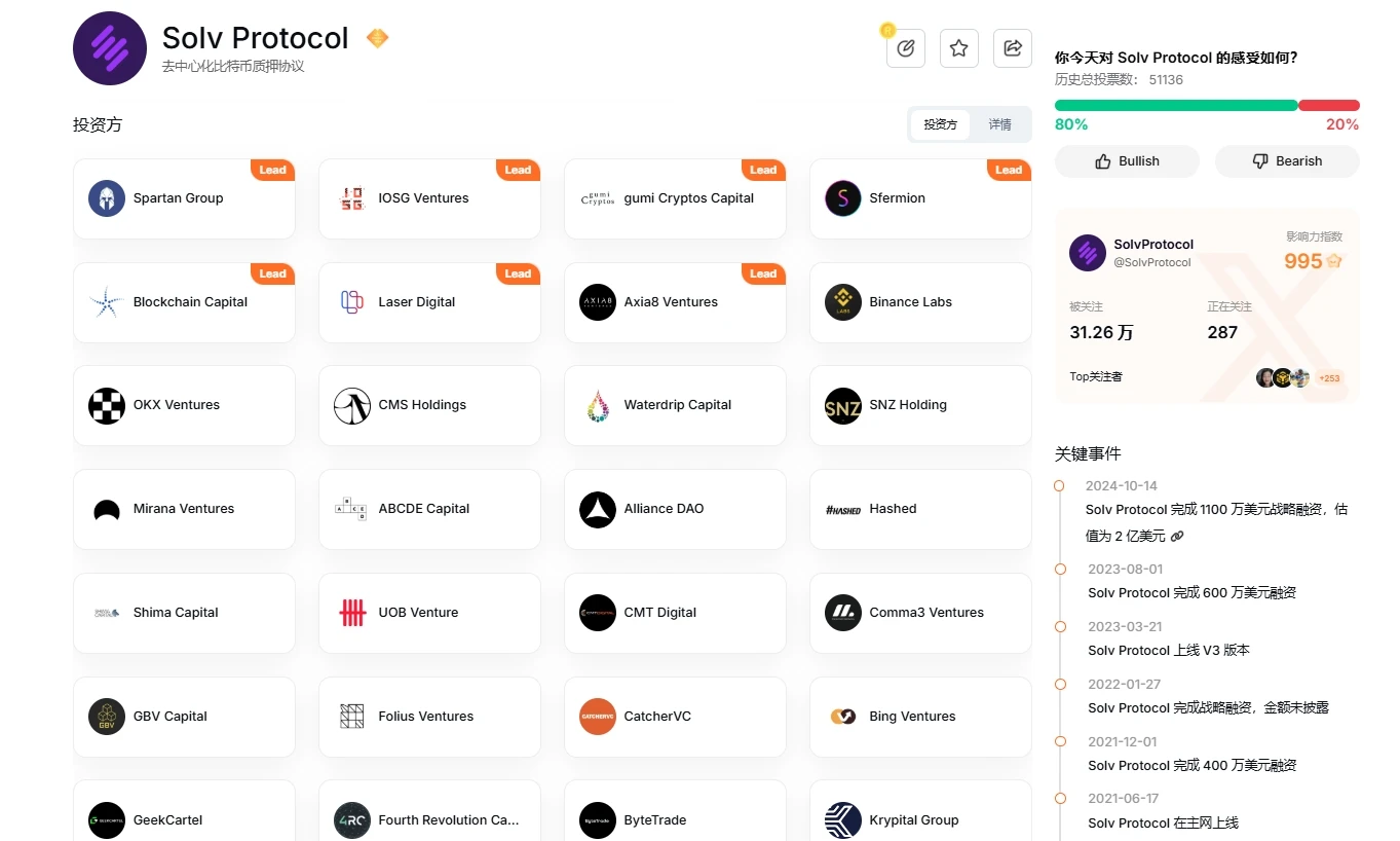 Solv 公开披露的融资金额是 2200 万美金,除了众所周知的币安 Labs,我最欣赏的是 Blockchain Capital。