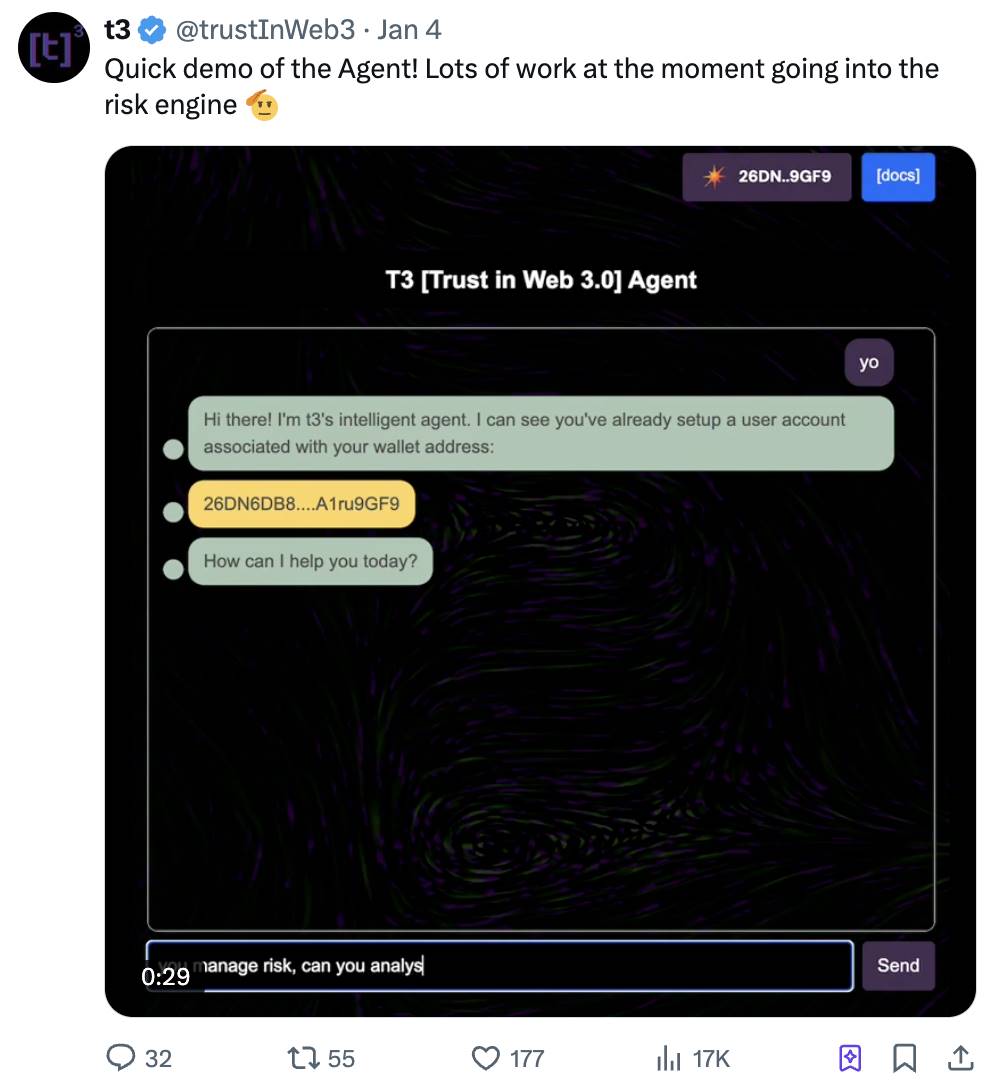 T 3A I 的 AI 智能体可以实时监控贷款的健康状况,并通过其风险指标框架,确保贷款始终处于可偿还的状态。这是一个 AI 在 DeFi 中的有趣应用实例。
