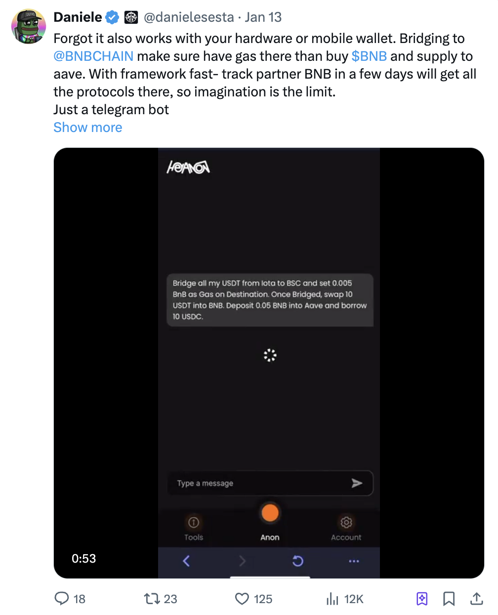 @HeyAnonai 是由知名开发者 @danielesesta 打造,他曾创建 DeFi 协议 Wonderland 和 MIM。Anon 的目标是简化 DeFi 的交互体验,无论是新手还是资深用户都能轻松上手。