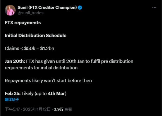 虽然 FTT 梦碎,但债权人的获赔却是板上钉钉。随着加密市场的持续上涨,在 2024 年 2 月,FTX 方就表示已有足够的资金来全额支付所有已批准的客户和债权人索赔。时间来到 10 月 8 日,美国法院法官正式批准 FTX 的重组计划,这使 FTX 可以首度向债权人还款,涉及金额逾 140 亿美元。