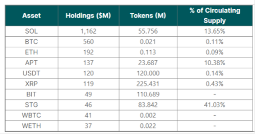 至于如何来,FTX 的钱包足以说明问题。早在 2023 年 8 月底,股东报告就对 FTX 加密资产进行了披露,10 大币种占据 FTX 加密资产总持仓的 72%,当时持仓总价值约 32 亿美元,其中 SOL 持仓最多,达到了 5500 万枚,BTC 持有约 21000 枚,ETH 持有 11.3 万枚。