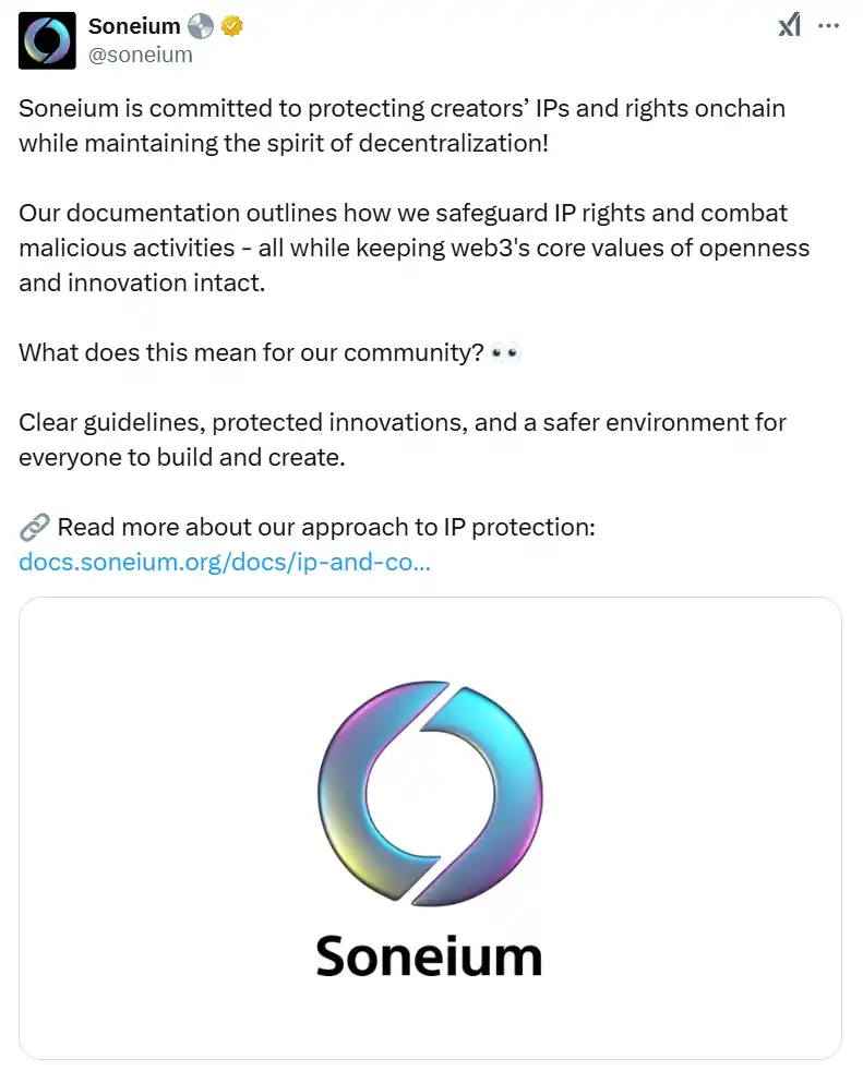 Soneium,这是由索尼旗下区块链部门索尼区块解决方案实验室(Sony Block Solutions Labs)推出的 L2 网络,货真价实的「索尼链」。今天,它的主网正式上线了,但没想到这个 Web2 巨头却在开局就锁死了一帮 degen 们,让 Web3 玩家们上线即维权...