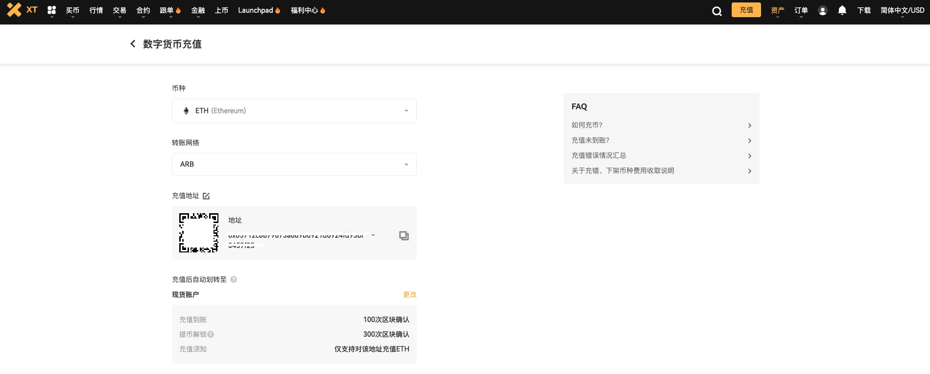 I. 登录 XT.COM,找到您的 Arbitrum 充值地址。