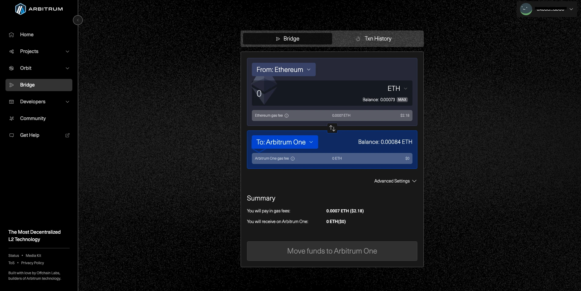 III. 等待链上确认,完成后,您的代币会以“包装”形式显示在 Arbitrum 网络中。