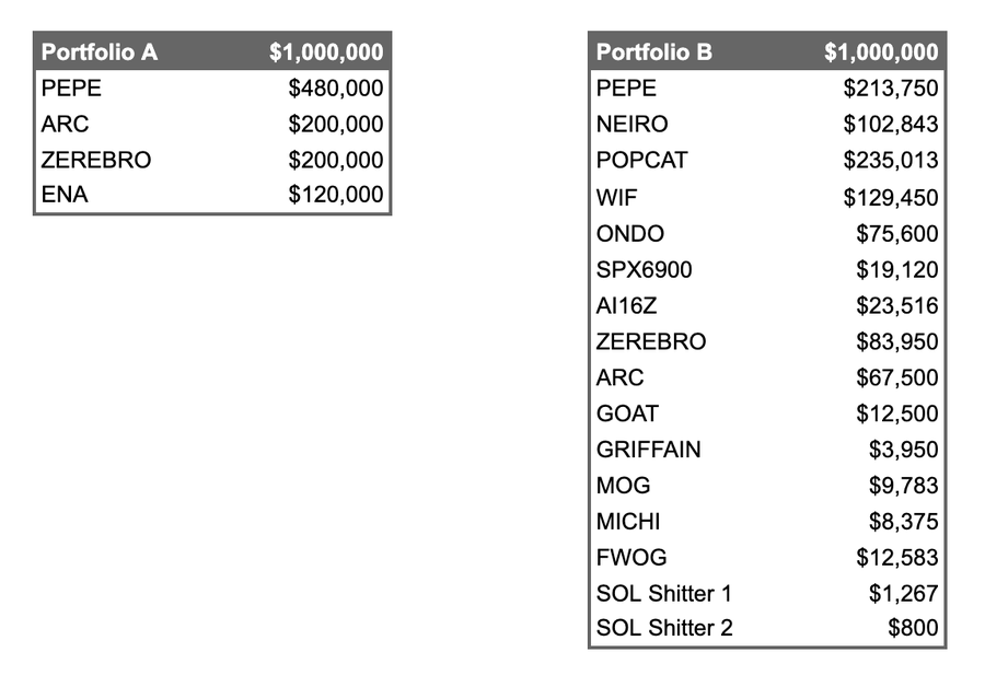 事实证明,在有信念的前提下加大部位,并通过複利实现增长,比随便炒作一个 Memecoin 更能让人长期保有财富,成为真正的百万富翁。每笔交易都应该对你的配置产生有价值的影响,否则就不值得进行。